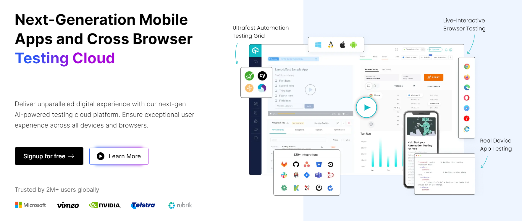 Overview: LambdaTest is a cloud-based tool, offering comprehensive cross-browser testing automation. It ensures your web and mobile applications perform flawlessly across a broad range of browsers and operating systems, making compatibility concerns a thing of the past.