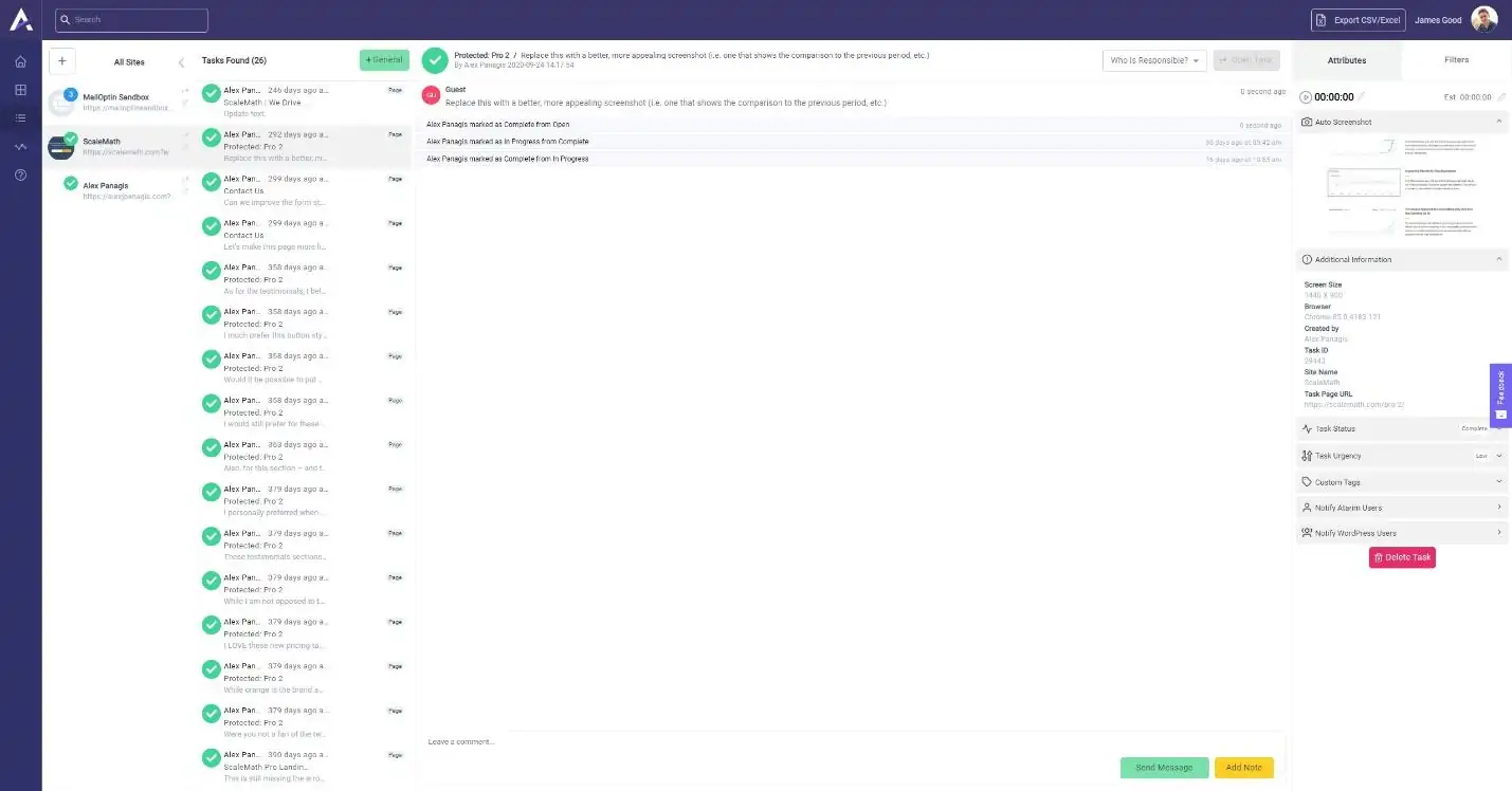 So, whether you’re working on a web design project or tweaking site features, you and your client can communicate with each other from a single, secure location. This streamlines client and project management like clockwork. Clients can leave comments and assign tasks, and the team can respond to them.