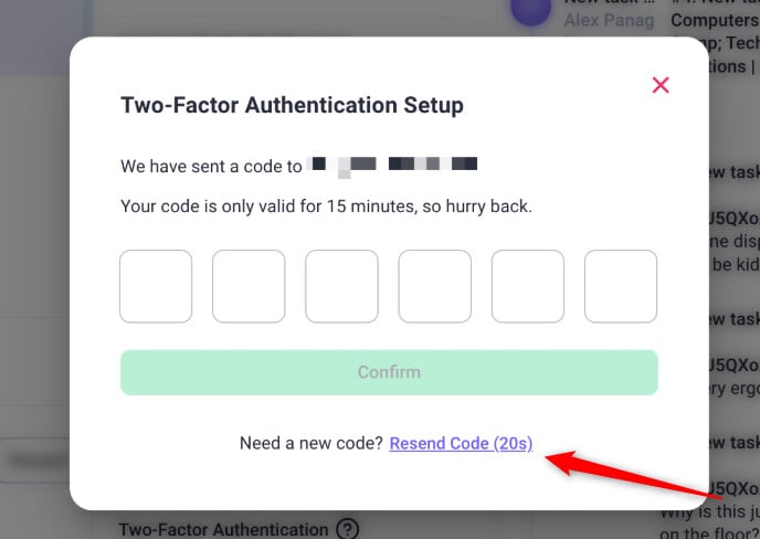 Note: You can request a new code only after the previous one expires.