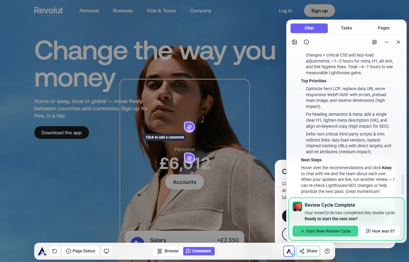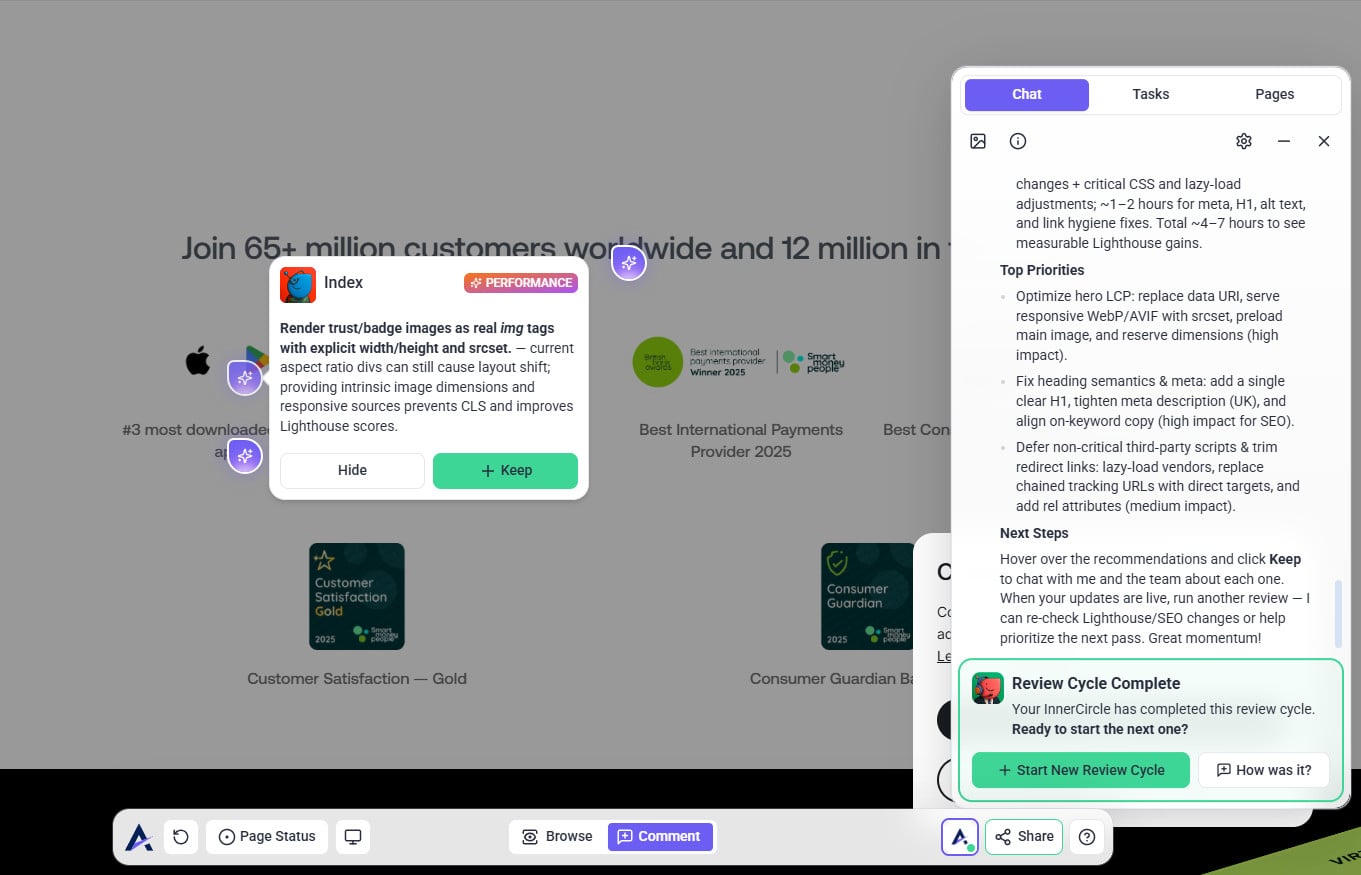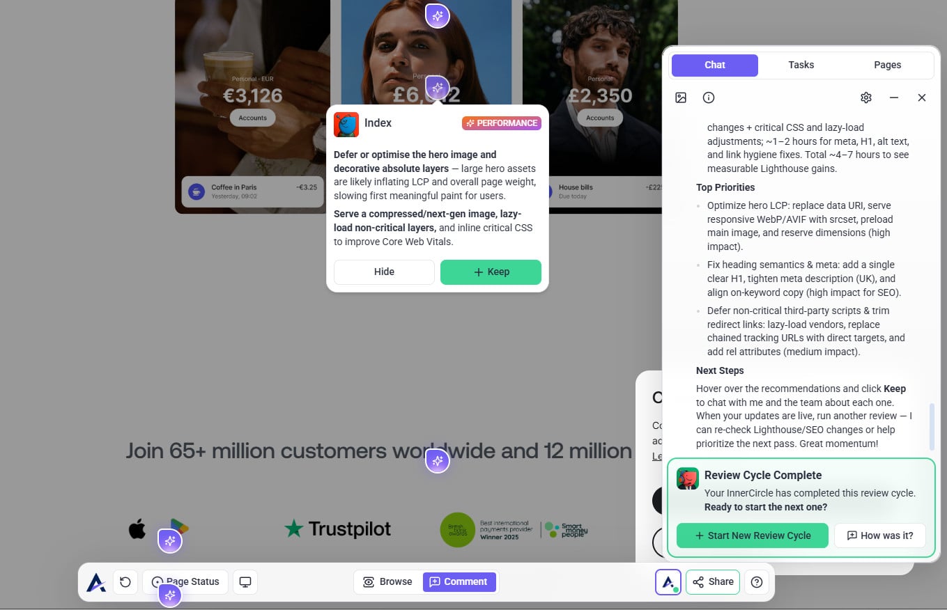 Index is most effective when paired with other Inner Circle agents, creating a complete workflow that covers SEO, copy, design, accessibility, and technical performance. While Index ensures the page is semantically structured, crawlable, and optimized for search, other agents address complementary areas: