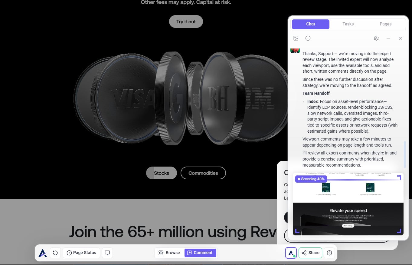 Before Index can scan, load your page inside Atarim’s Visual Collaboration (Canvas) View. This ensures Index analyzes the actual page markup and metadata, not just a static mockup. How to Run an AI-Powered Page Review