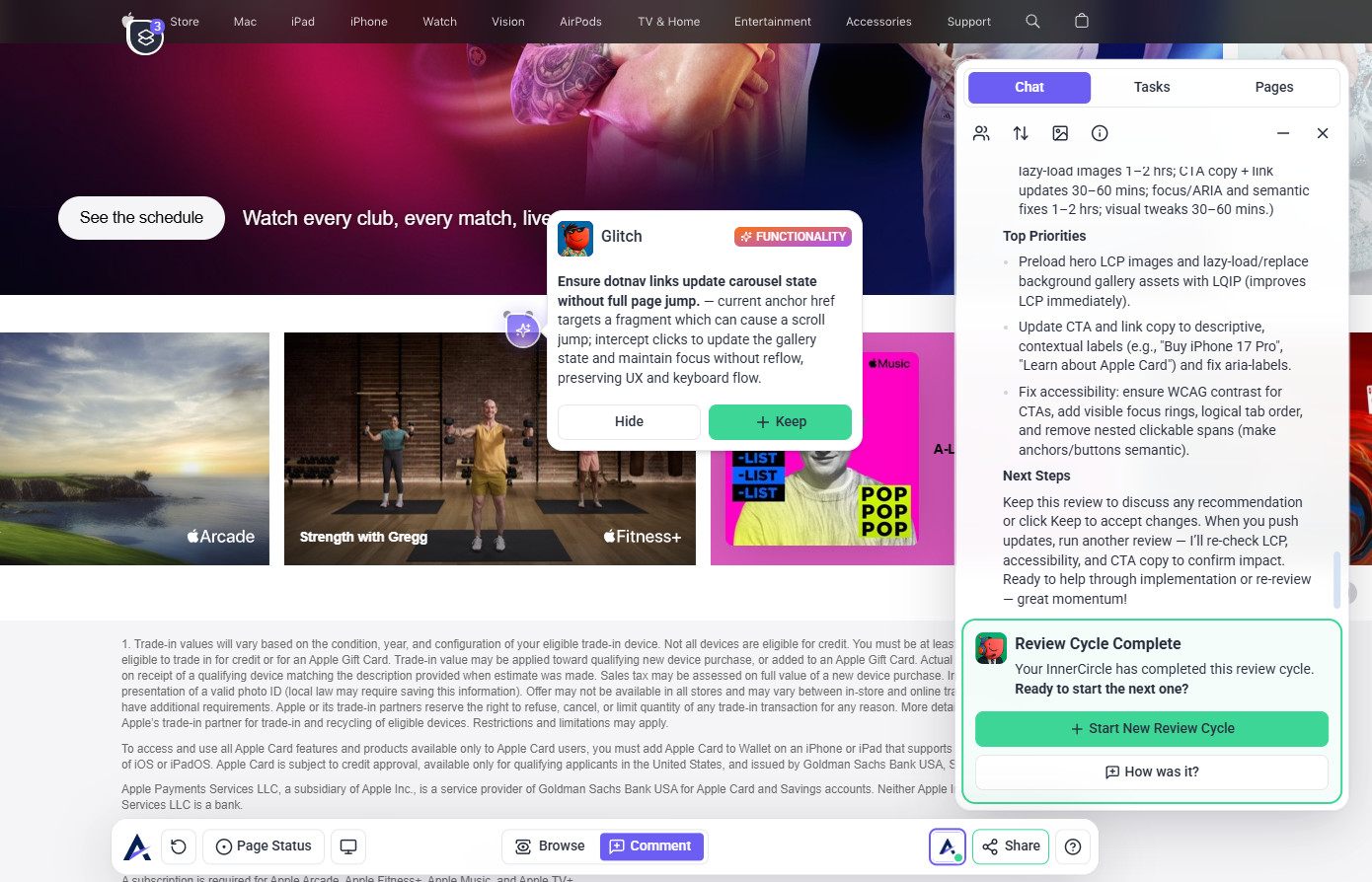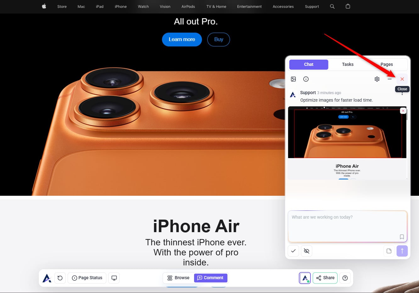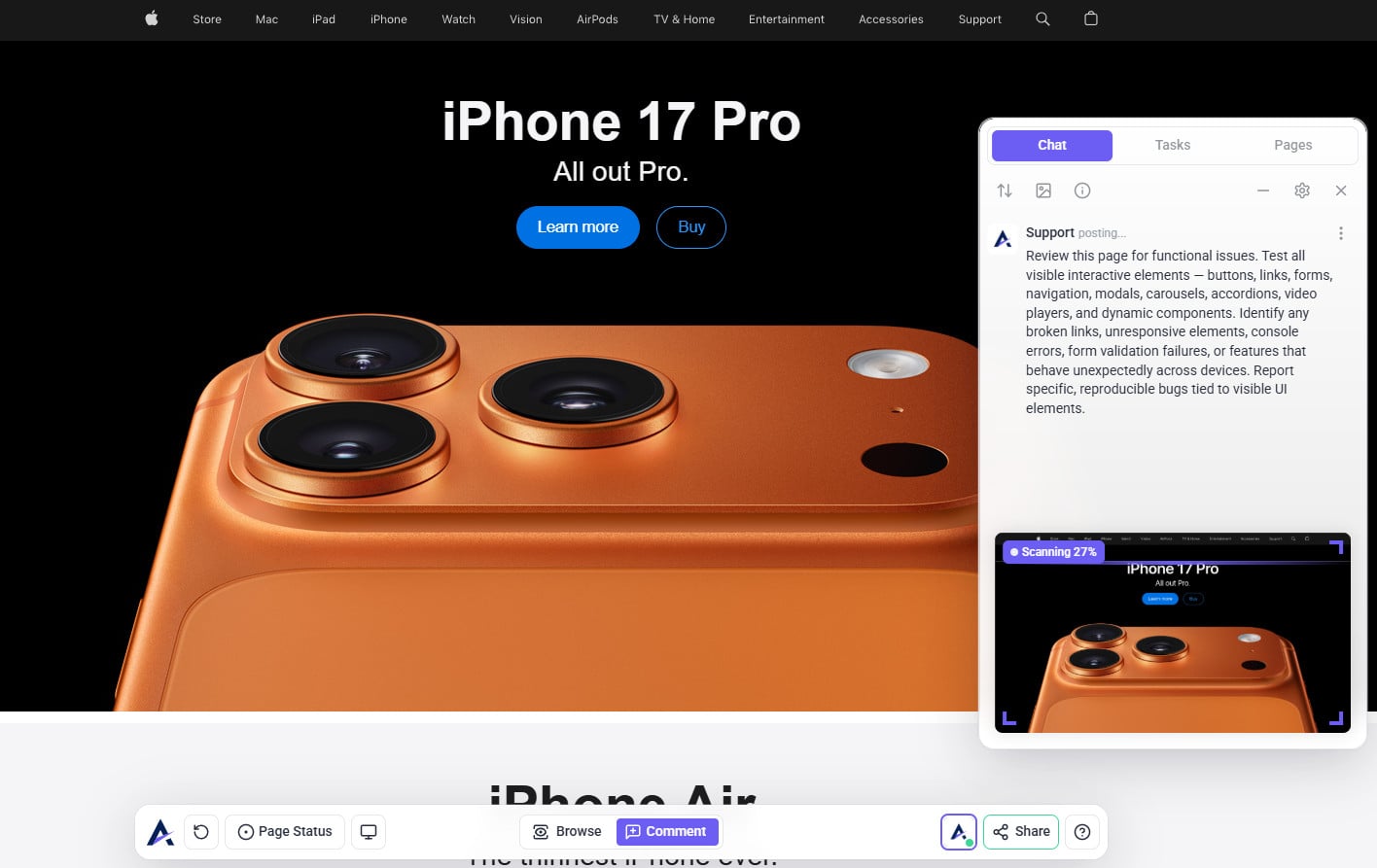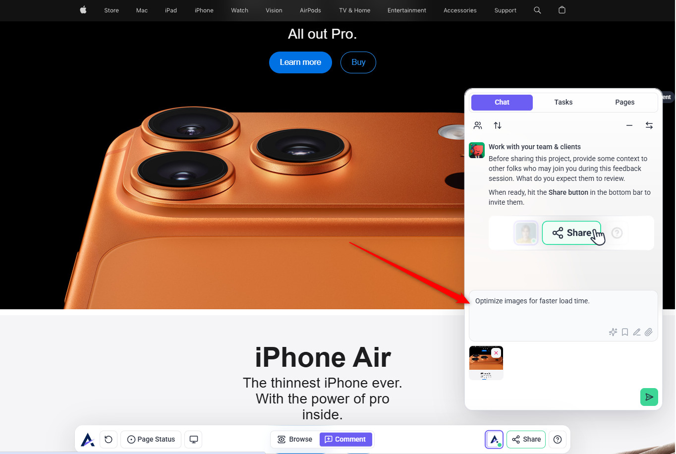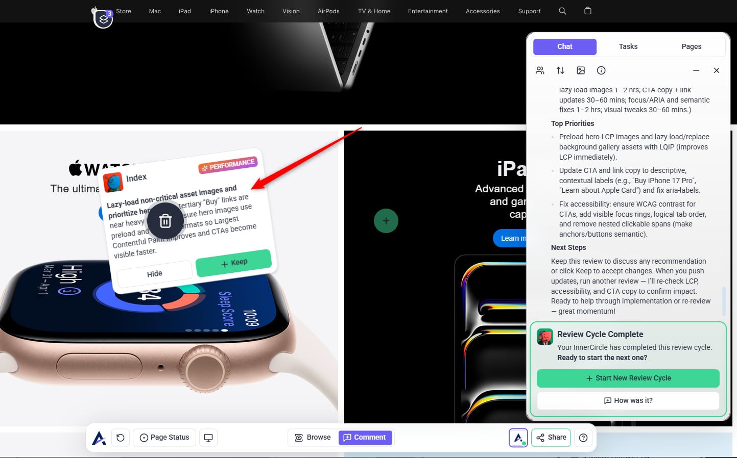 Tip: The review modal prioritizes your intent. When you state a specific request (e.g., “check this page on mobile”), the AI tailors its feedback to that goal — making reviews more focused, relevant, and actionable instead of generic.