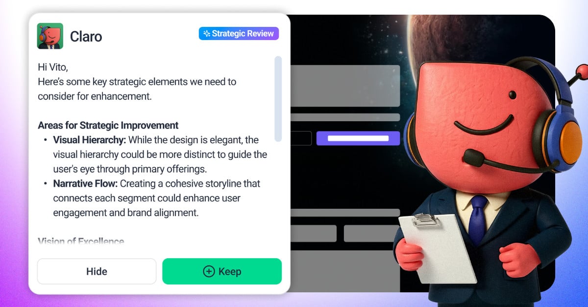 • Or make it specific if you want focused feedback (“Is this headline strong enough?” or “Does the layout feel balanced?”).