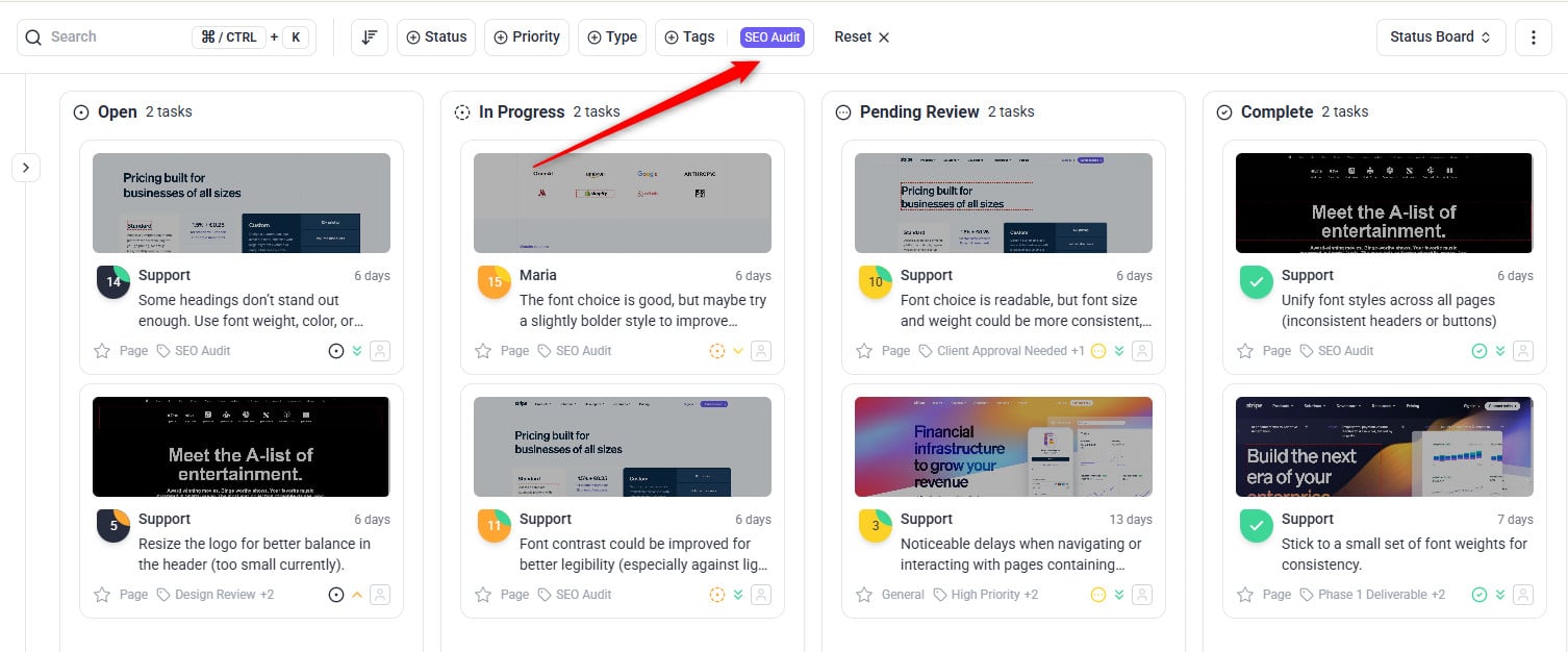 Tip: If managing multiple projects, use filtering options to focus on specific ones.