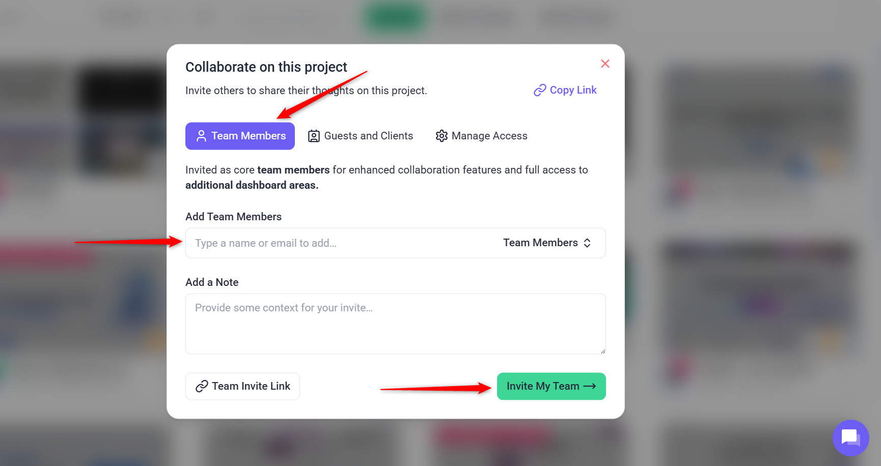 Tip: When inviting clients, let them know they can provide feedback without the need for technical expertise, making it easy for them to participate in the project.