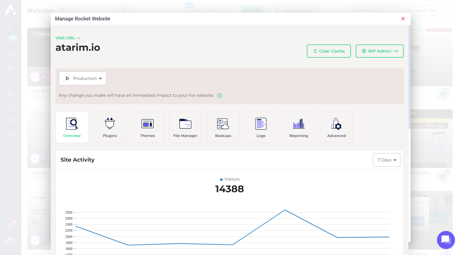 By having a website on both Rocket.net and your Atarim Agency Dashboard, this will give you access to the hosting settings inside your Websites screen.