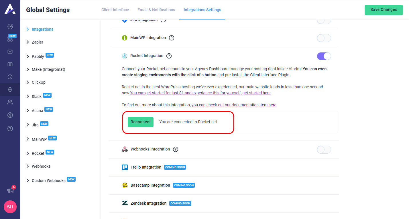 Currently, Atarim only supports one Rocket.net account connection per workspace. If you manage multiple Rocket.net accounts, consider using separate Atarim workspaces for each.