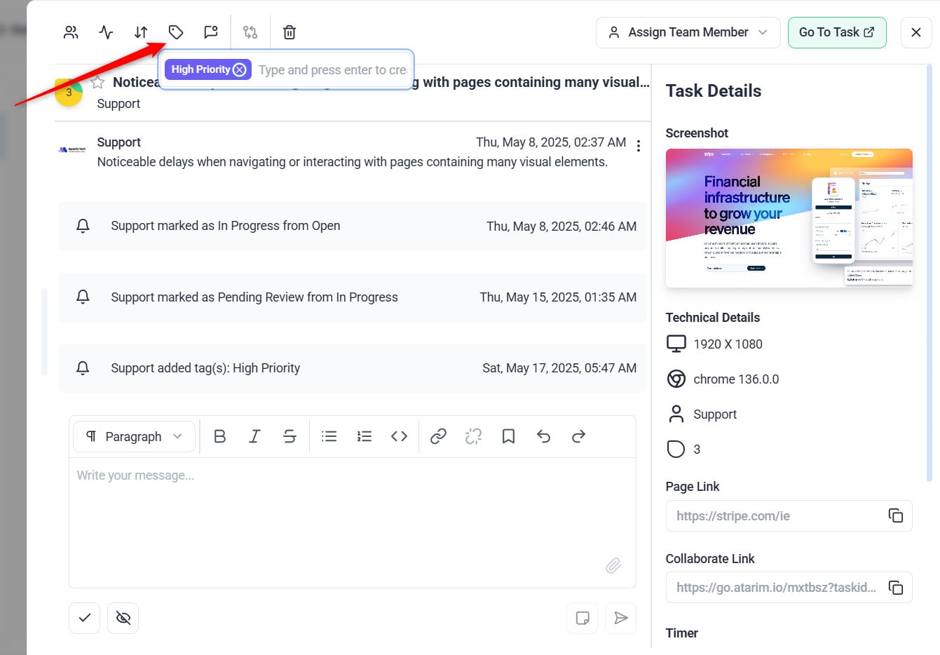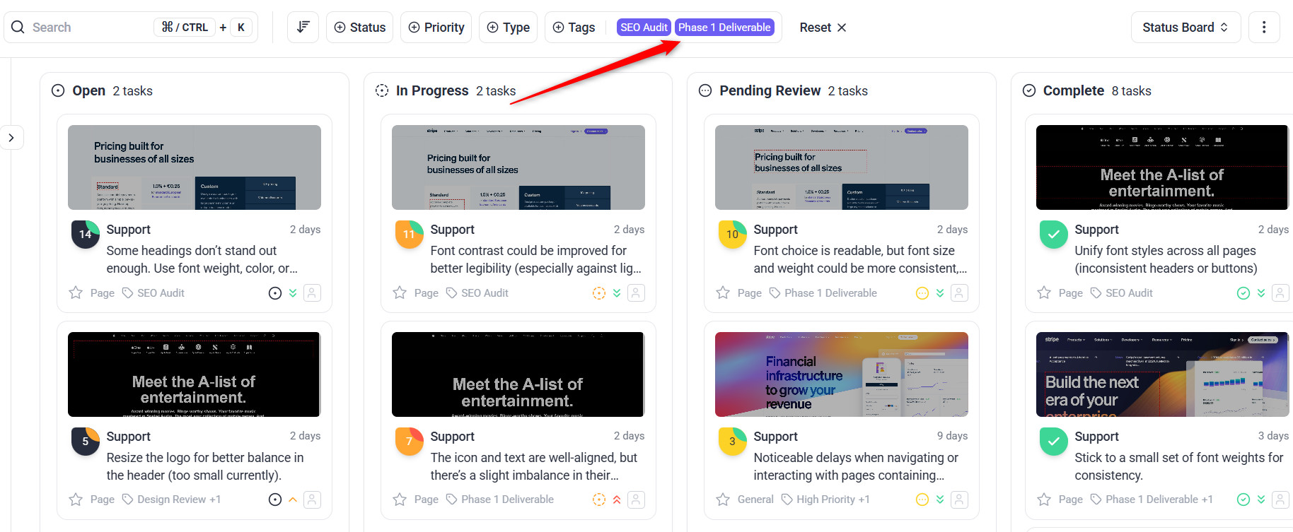 You can tailor tags to fit your team’s unique needs, whether you’re tracking feedback types, issue severity, or client requests.