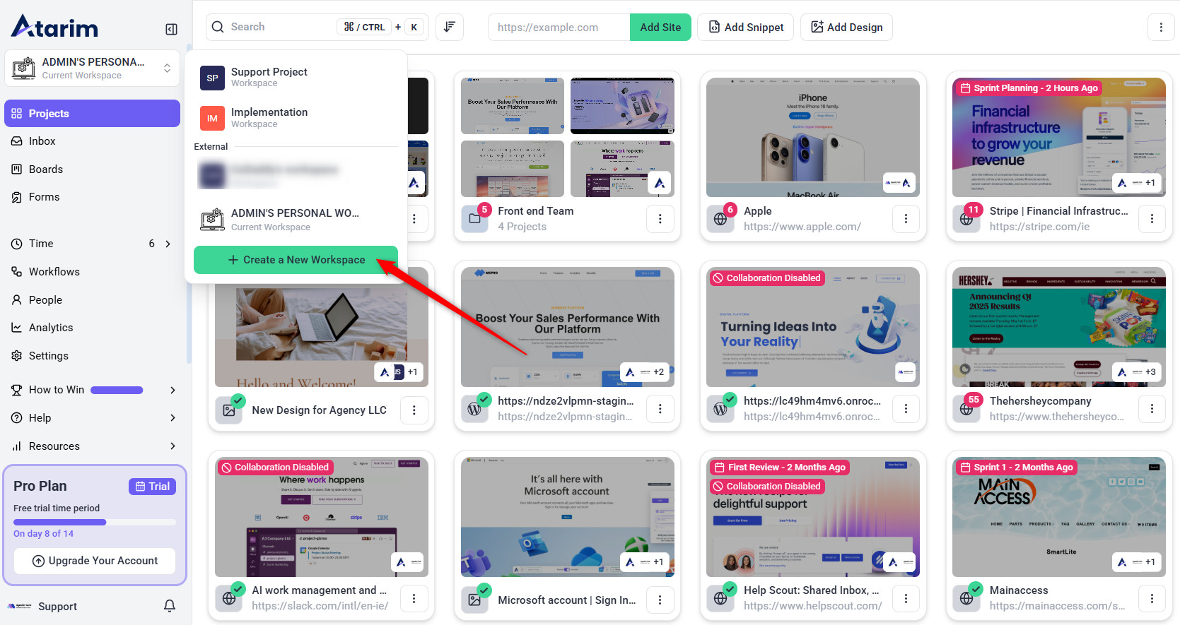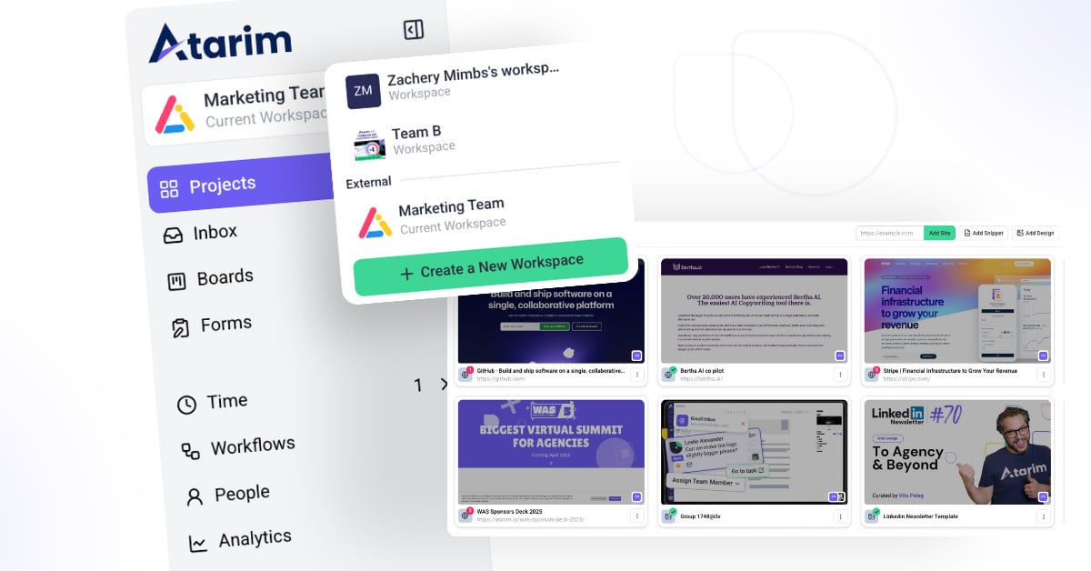 Atarim’s Folder/Workspaces help marketing managers organize multiple campaigns simultaneously.