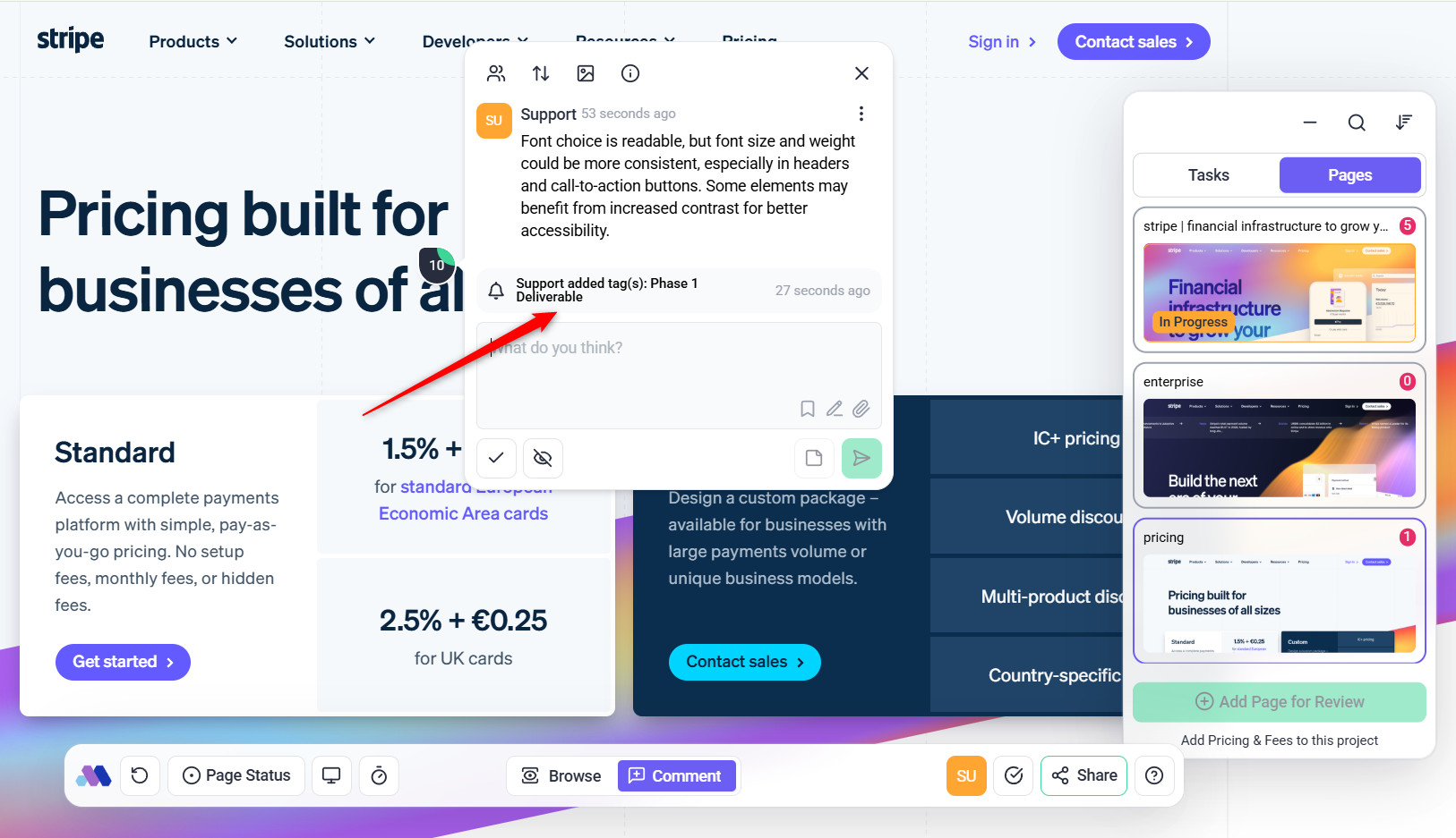Use Atarim’s Project Stage/Milestone feature to define each stage of your project. Breaking the project into stages can help the team visualize progress and anticipate upcoming steps, reducing the chances of bottlenecks.