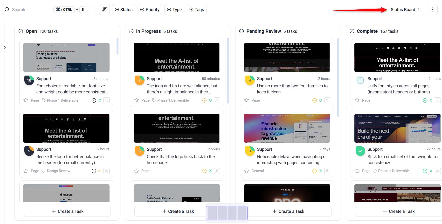 1. Go to your Atarim project’s Kanban board view.