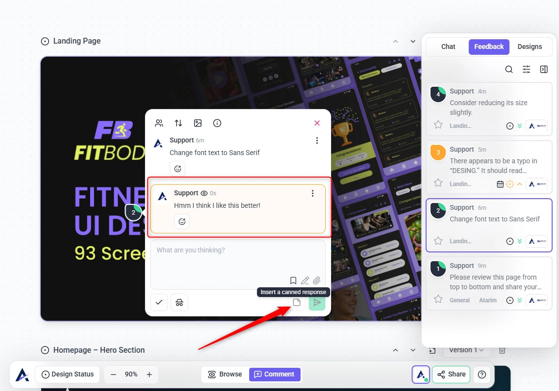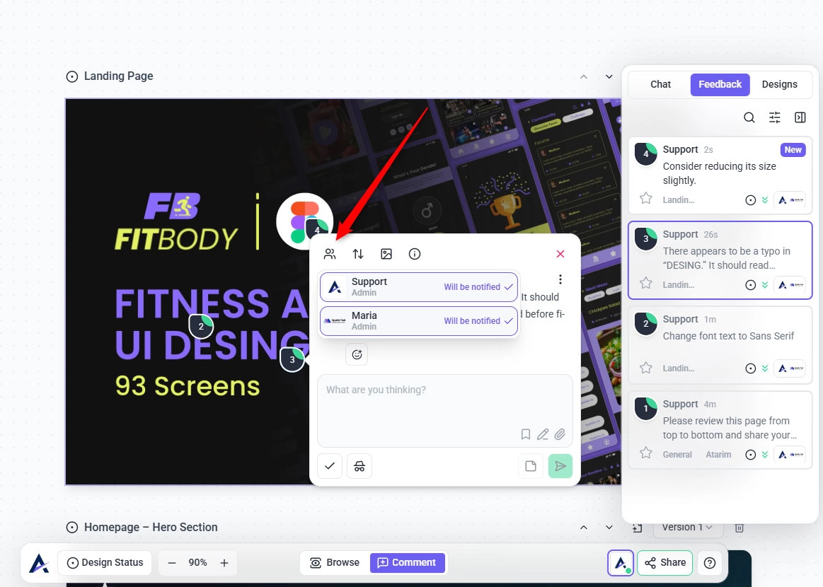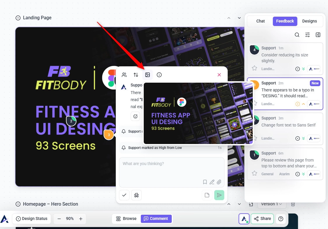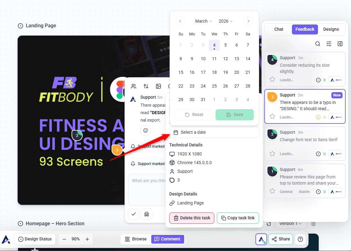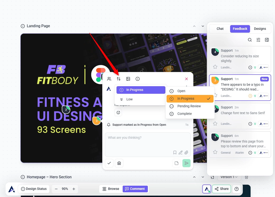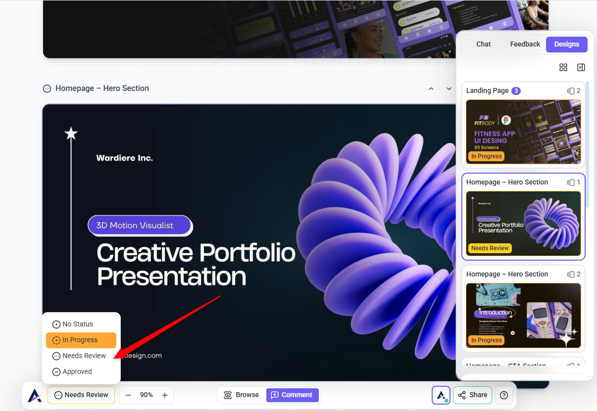 Each design page in Atarim follows a simple review workflow that helps teams move from design to approval without confusion.
