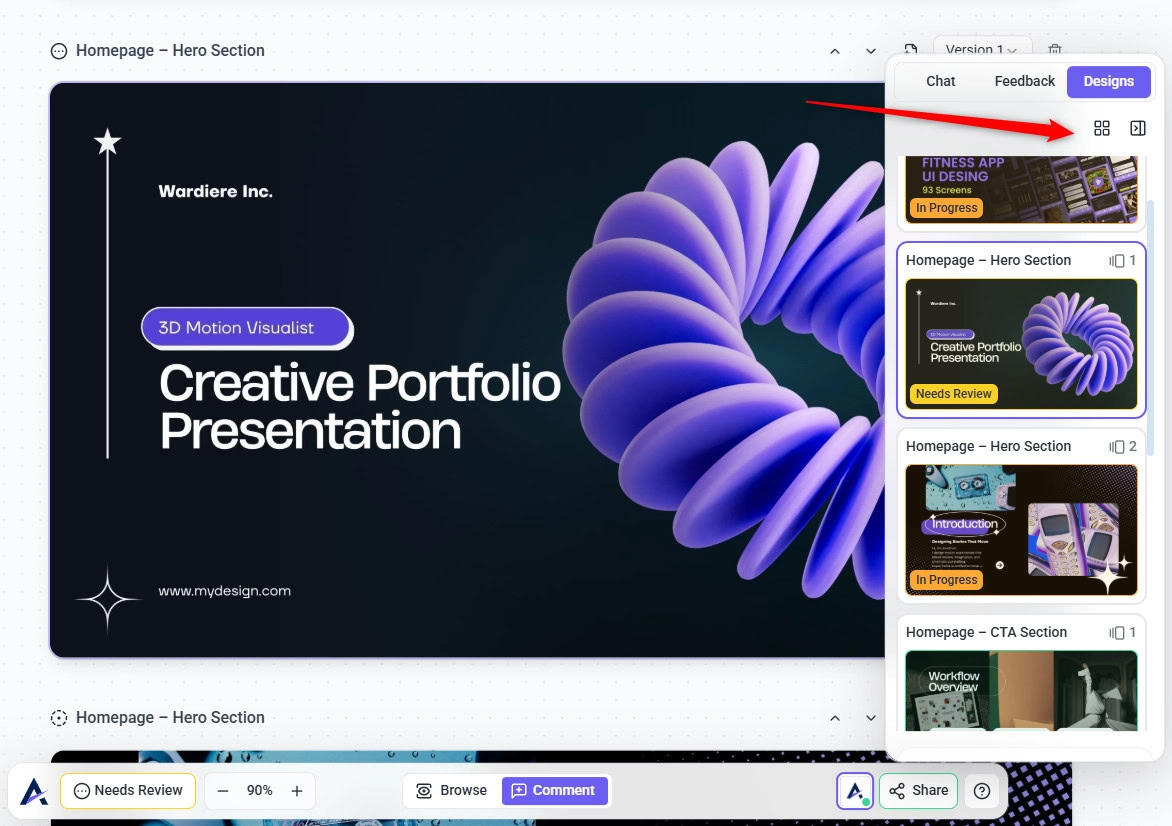 - Maintain Version Control – Upload multiple versions of the same design for easy comparison.