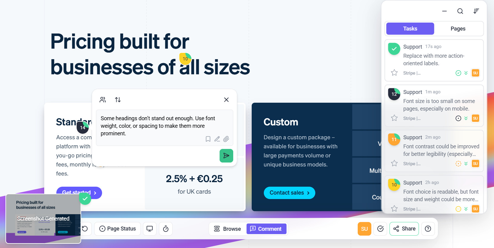 - Comments and tasks are anchored to specific elements.
