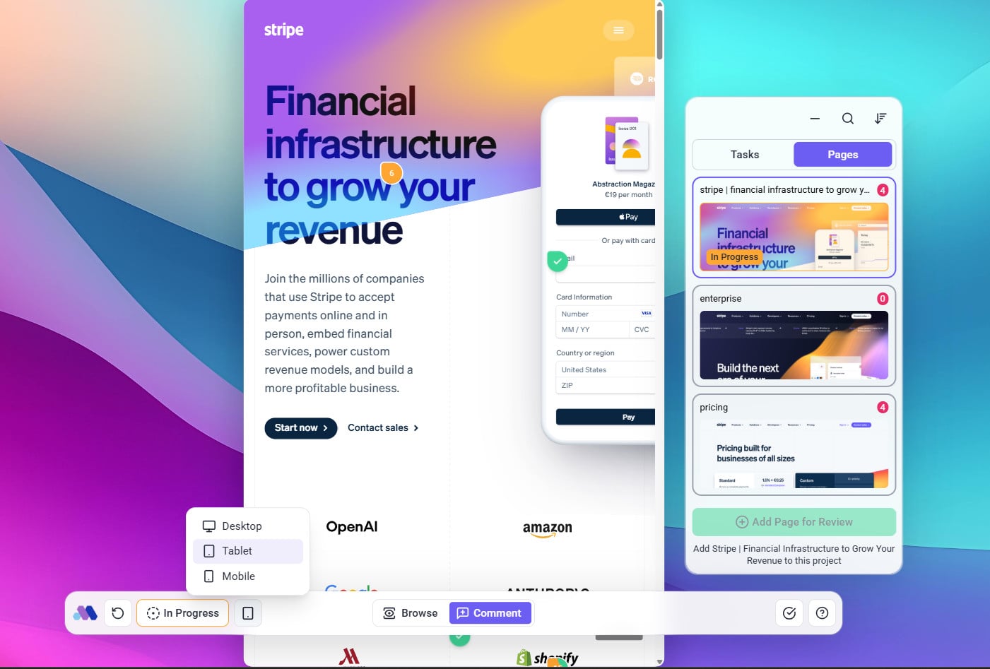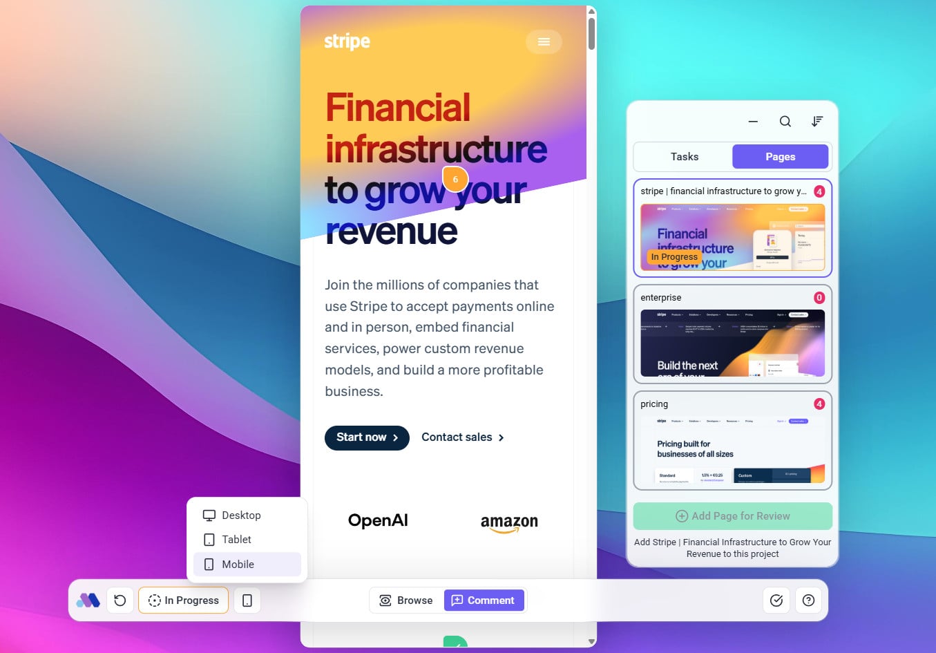Example Use Case: A client reviews a design in all three views (desktop, tablet, mobile) and leaves specific feedback, eliminating the need for separate design reviews for each breakpoint.