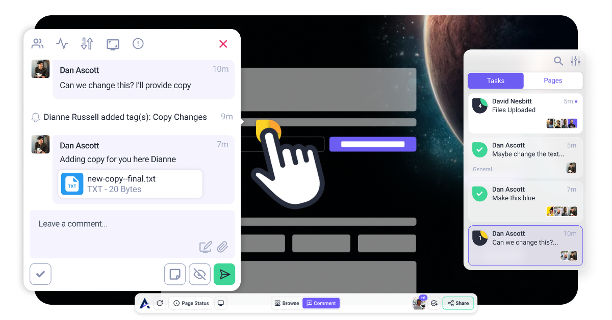 Atarim makes collaboration feel like everyone’s in the same room, every note, edit, and discussion tied directly to the work itself.